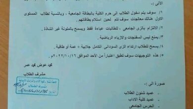 قرار جديد جامعة دنقلا تصدر لوائح تمنع دخول الجامعة بالسفنجات والعبائة الشاذة والازياء الرياضية