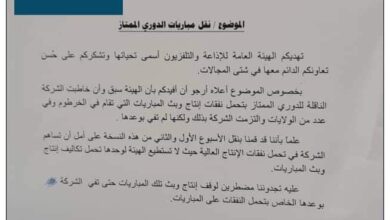 بخطاب ممهور بتوقيع المدير العام للهيئة العامة للاذاعة والتلفزيون تحصلت (مريود برس) على نسخة منه اعلن خلاله توقف نقل الدورى…
