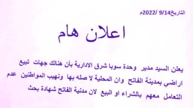 بيان تحذيري و مهم هنالك أخبار متداوله هذه الايام بان هنالك جهات تبيع اراضي للمواطنين بمربعات الفاتح بشرق النيل .…