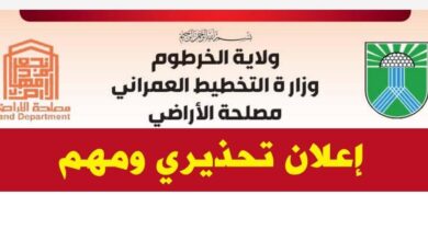 بيان تحذيري من مصلحة أراضي الخرطوم للمواطنين