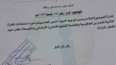 قررت التربية والتعليم تأجيل إمتحانات الفترة النهائية للمرحلتين الإبتدائية والمتوسطة بولاية الخرطوم عقب عطلة عيد الفطر المبارك. وحمل خطاب ممهو…