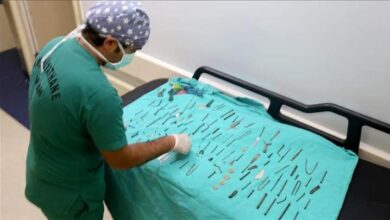 فريق طبي يستخرج (158) قطعة معدنية وسكين من معدة سيدة تركية
