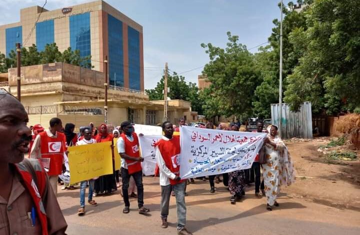 نفذ متطوعوا الهلال الأحمر السوداني اليوم وقفة احتجاجية امام الأمانة العامة لجمعية الهلال الاحمر السوداني وسط العاصمة السودانية الخرطوم لمطالبين فيها بحل لجنة التسيير التى تدير العمل