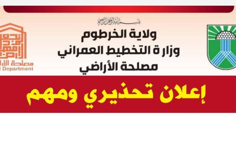 بيان تحذيري من مصلحة أراضي الخرطوم للمواطنين
