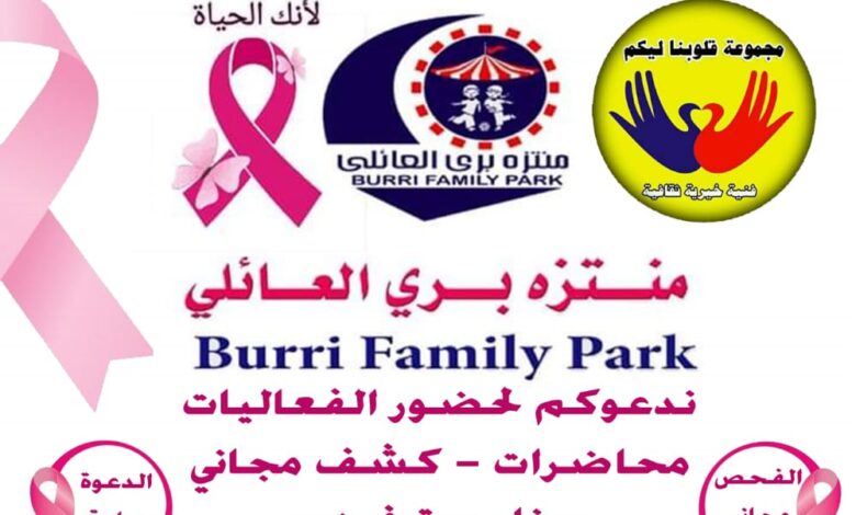 بمشاركة واسعة من صحفيين وإعللميين وفنانين وسفراء تحتفل مجموعة قلوبنا ليكم الثقافية باليوم العالمي لسرطان الثدي ( أكتوبر الوردي) يوم الجمعة القادم 7 اكتوبر بمنتزه بري العائلي