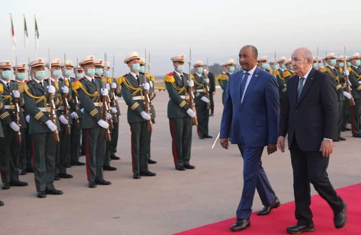 واستقبل رئيس مجلس السيادة الانتقالي الفريق اول ركن عبدالفتاح البرهان استقبالاً رسمياً بمطار الجزائر حيث كان في استقباله الرئيس الجزائري عبد المجيد تبون وسفيرة السودان لدى الجزائر السفيرة نادية محمد خير وأعضاء السفارة السودانية بالجزائر.
