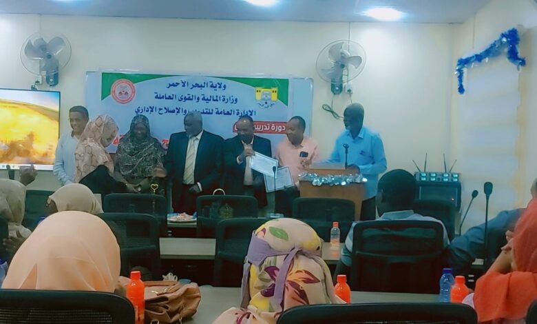 من جهته أكد مدير إدارة التدريب والإصلاح الإداري بوزارة المالية والقوى العاملة بحكومة ولاية البحر الاحمر اهتمام حكومة الولاية بالتدريب وأثنى على واليها الفريق مصطفى محمد نور لإيمانه بالتدريب وأشار إلى صدور قانون التدريب في العام الماضي ووصف ذلك بأنه نقلة فضلا عن تصديق الوالي على ثلاثة فرص تدريب بالخارج واعتبر أنها نقلة نوعية تحقق الرضا الوظيفي ودلل على حرص الحكومة على التدريب بأنهم خلال عشرة أيام نفذوا خمسة دورات تدريبية والدورة والسادسة سيتم تنفيذها اليوم كحزمة واحدة صدقها الوالي مما يؤكد اهتمام الوالي بالتدريب